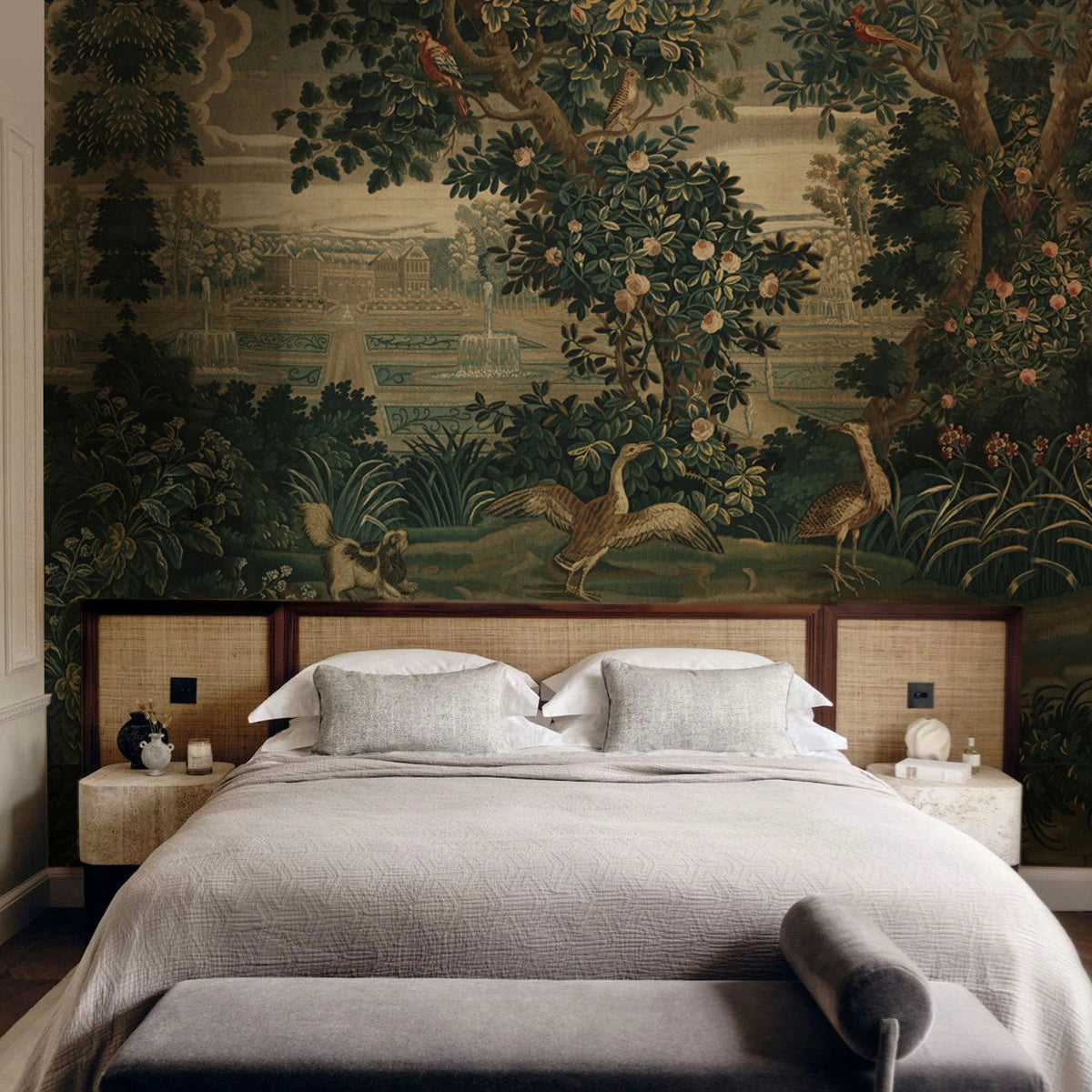 Tapete mit Pflanzen- und Tiermotiv VINTAGE GARDEN ARRAS grün