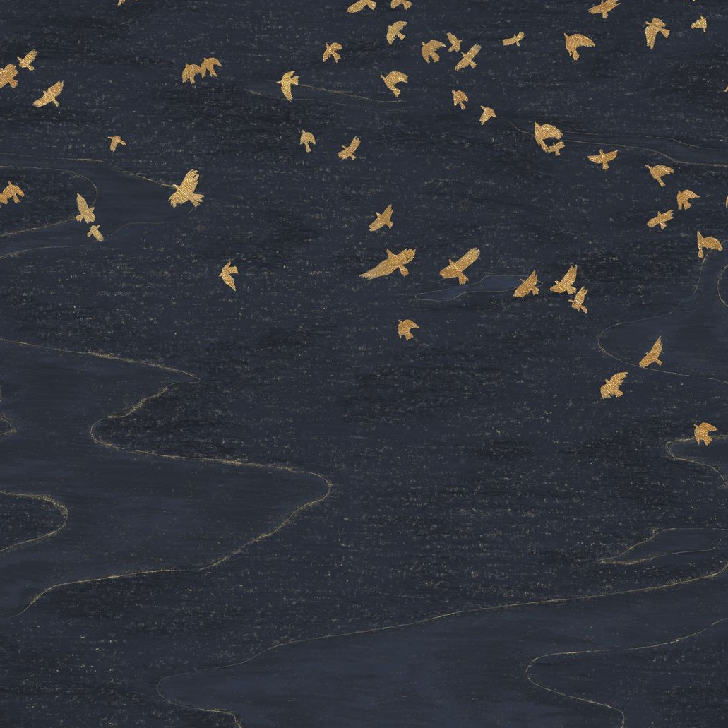 Wandbild mit Tiermotiv Vögel MIGRATION in Marineblau mit Gold