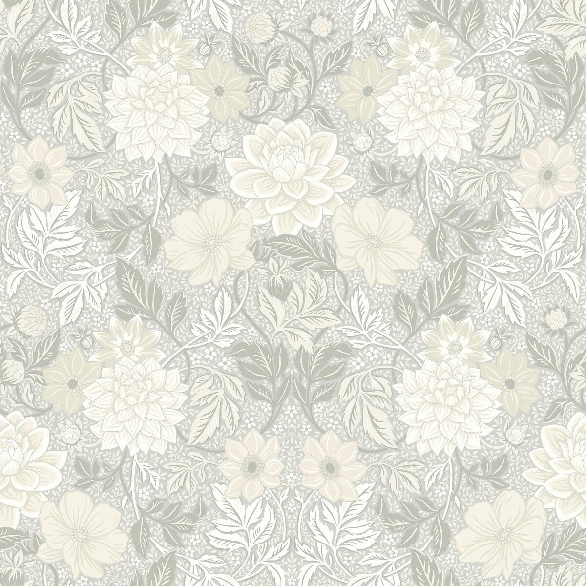 Vlies-Tapete mit Pflanzenmuster DAHLIA GARDEN grau-beige mit Weiß
