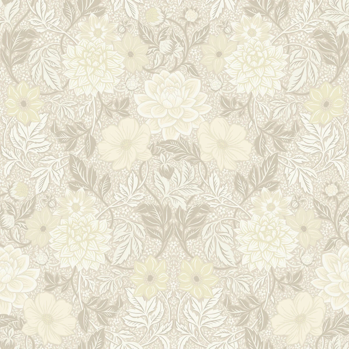 Vlies-Tapete mit Pflanzenmuster DAHLIA GARDEN warmweiß mit beige
