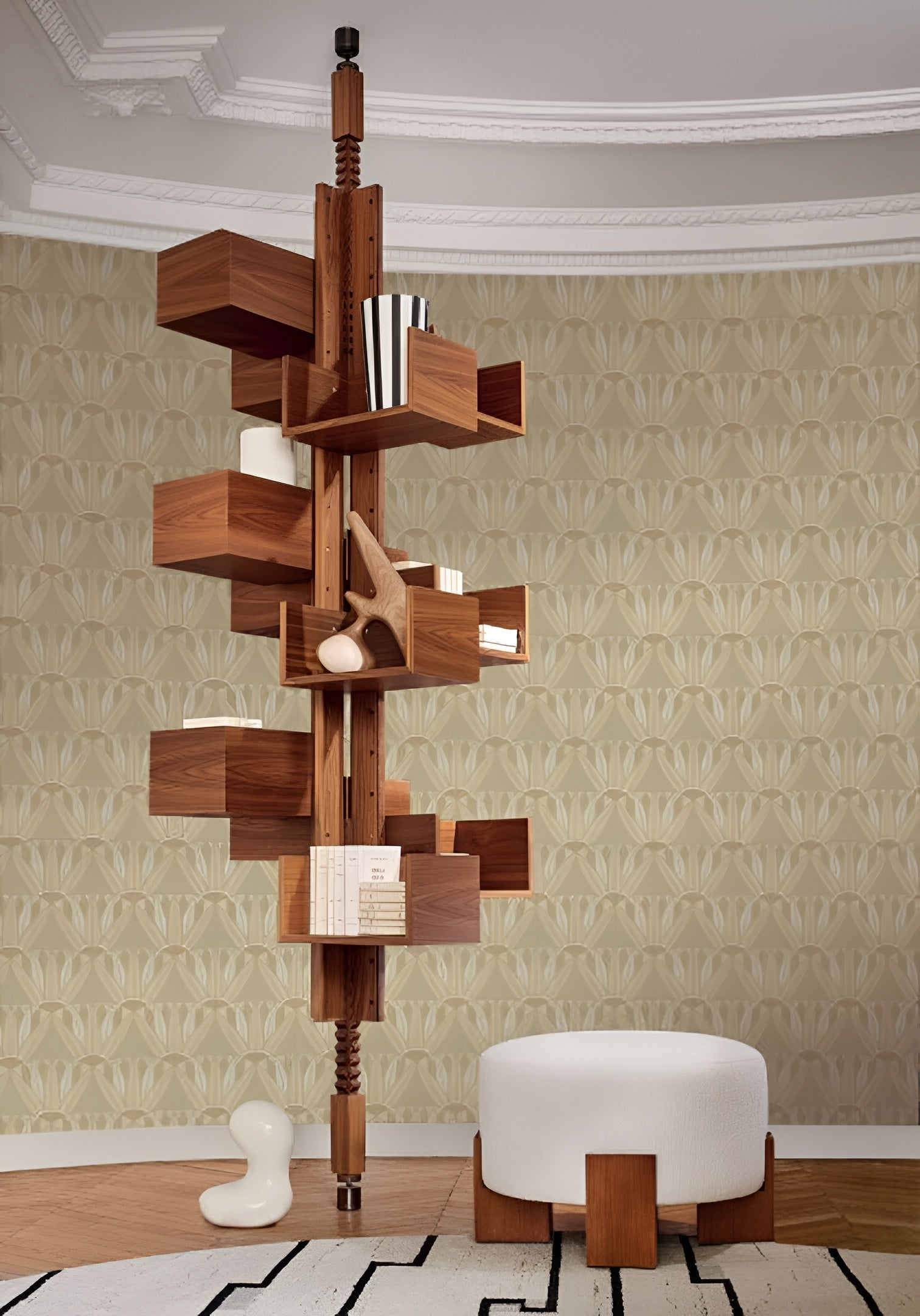 Tapete mit Pflanzenmotiv von Lotusblumen CASTALIA - VERT CENDRE/DORE beige mit Gold