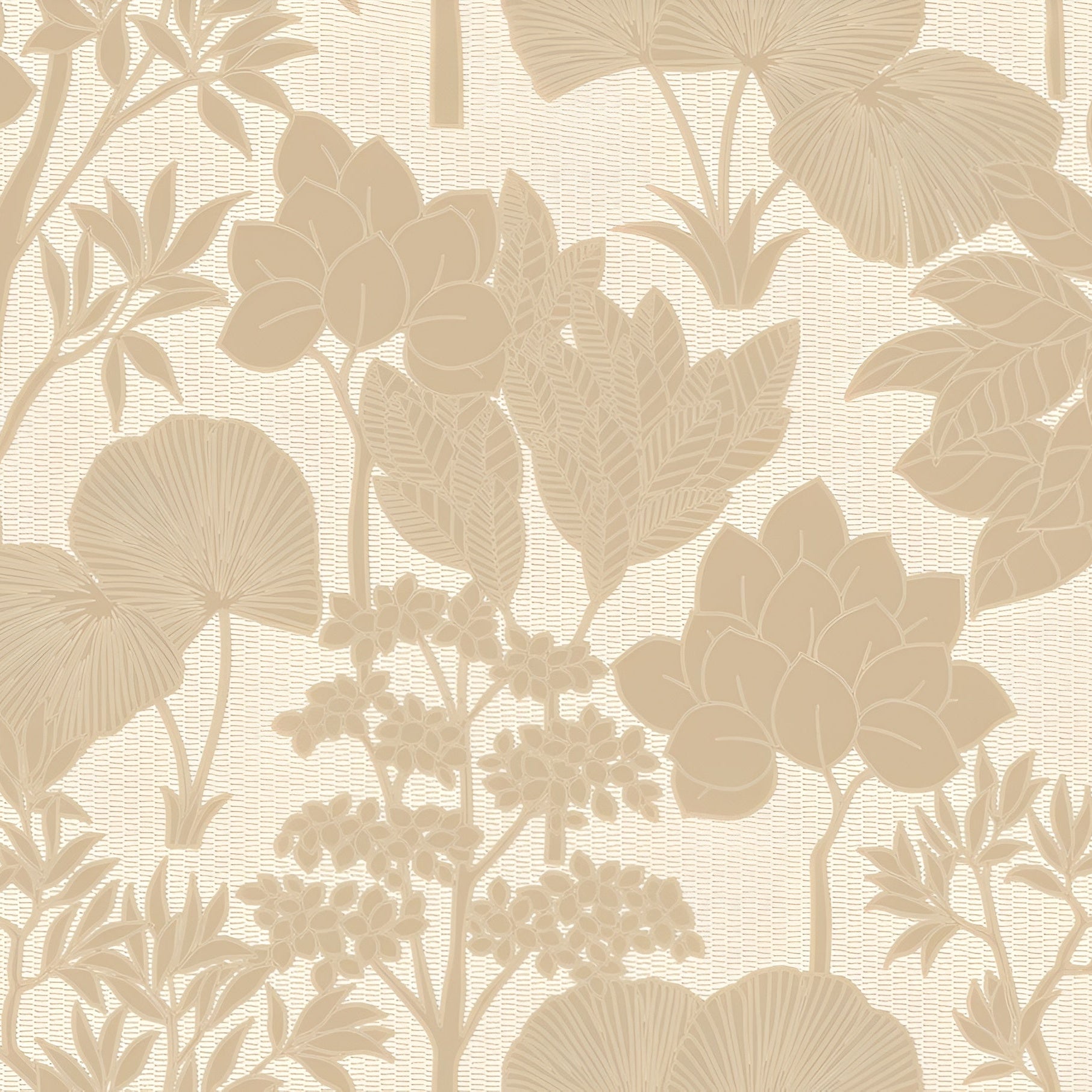 Strukturierte Tapete mit pflanzlichem Muster aus Blättern und Blumen INARA - SABLE beige