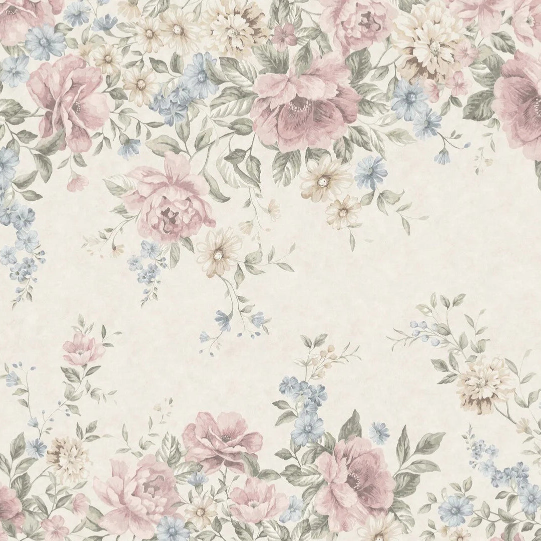 Wandbild mit floralem Motiv FLOWER GARDEN in Creme mit Rosa