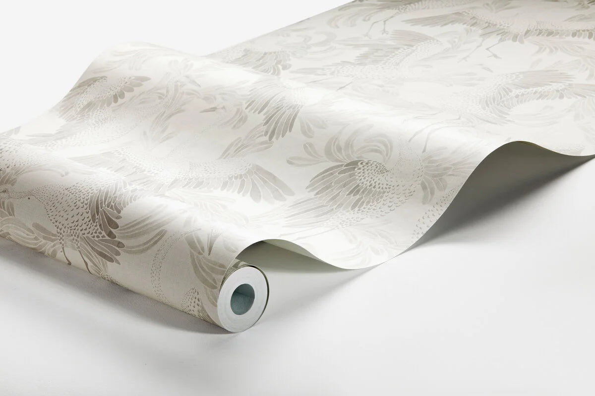 Tapete mit tierischem Motiv von Vögeln DANCING CRANE weiß mit grau