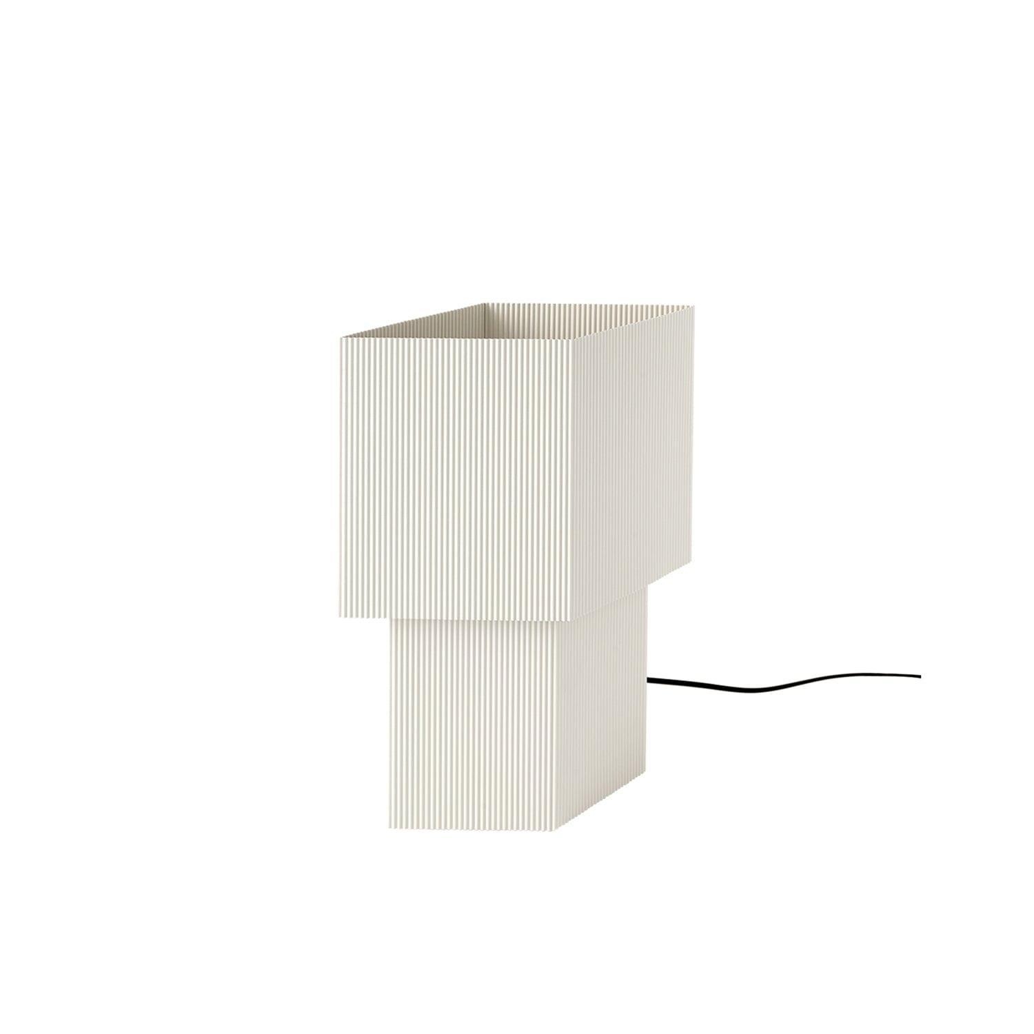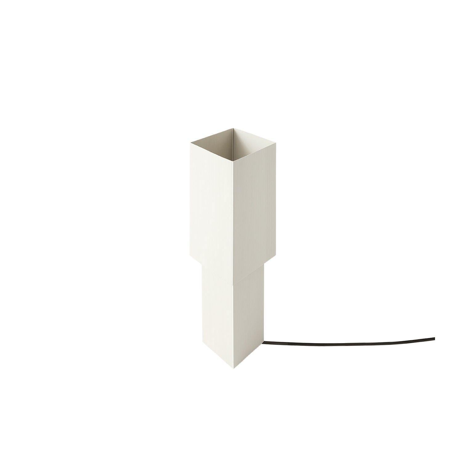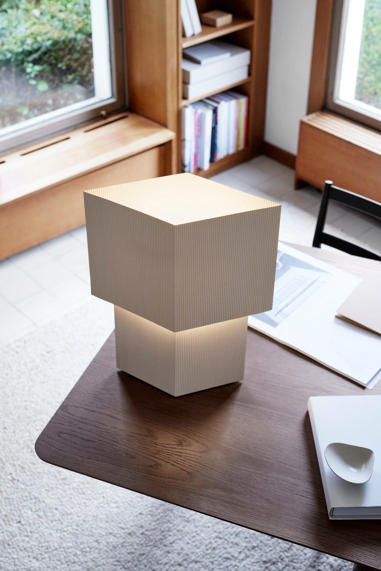 Tischlampe Romb ist ein Beispiel für durchdachtes, skulpturales Design, das mit seiner originellen Form ins Auge fällt. Das Design ist inspiriert von der Struktur von Wellpappe, und die charakteristische, geometrische Silhouette basiert auf zwei übereinander gestapelten Modulen. Dadurch präsentiert sich die Lampe Romb leicht und modern und bringt gleichzeitig einen grafischen Akzent in den Raum.