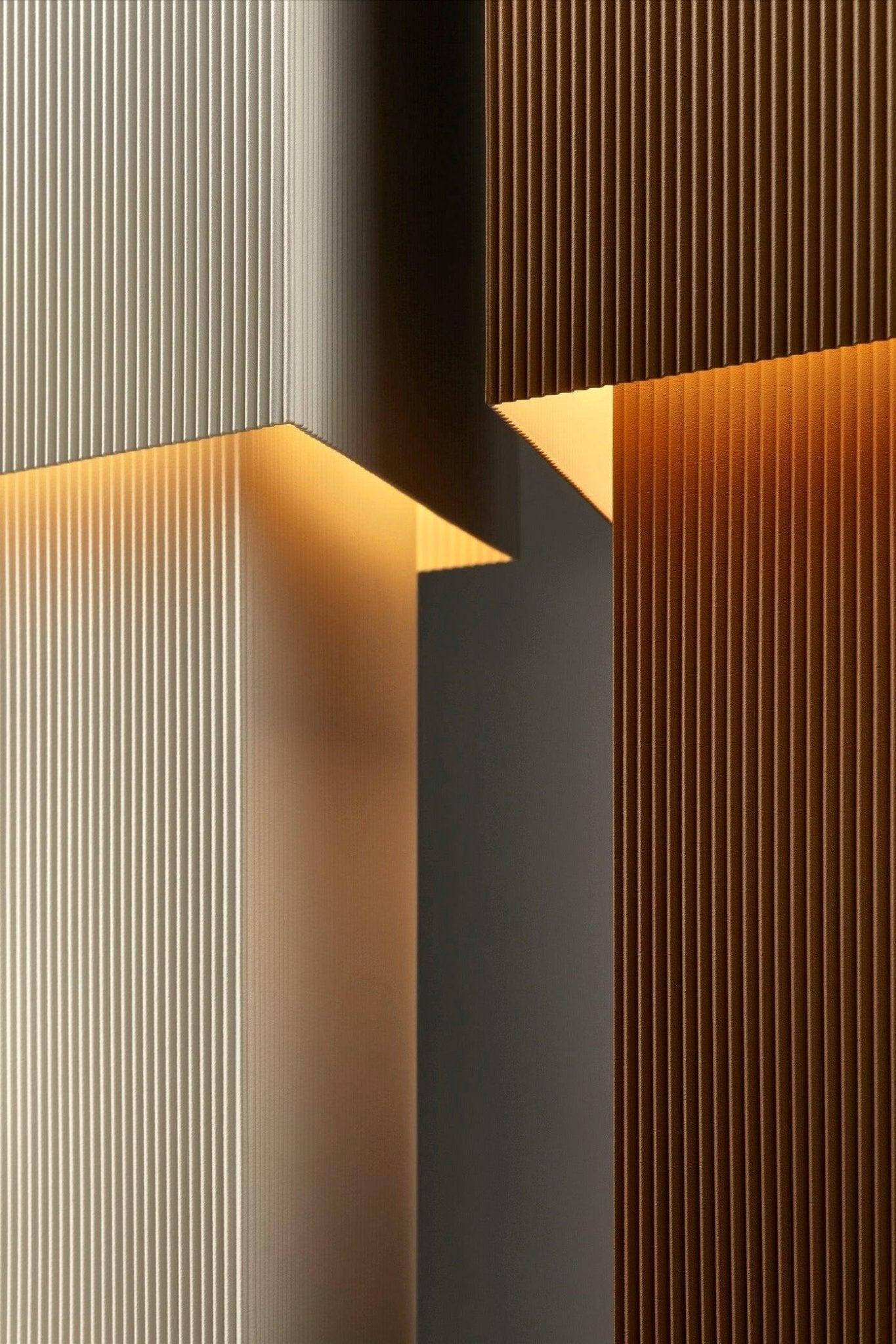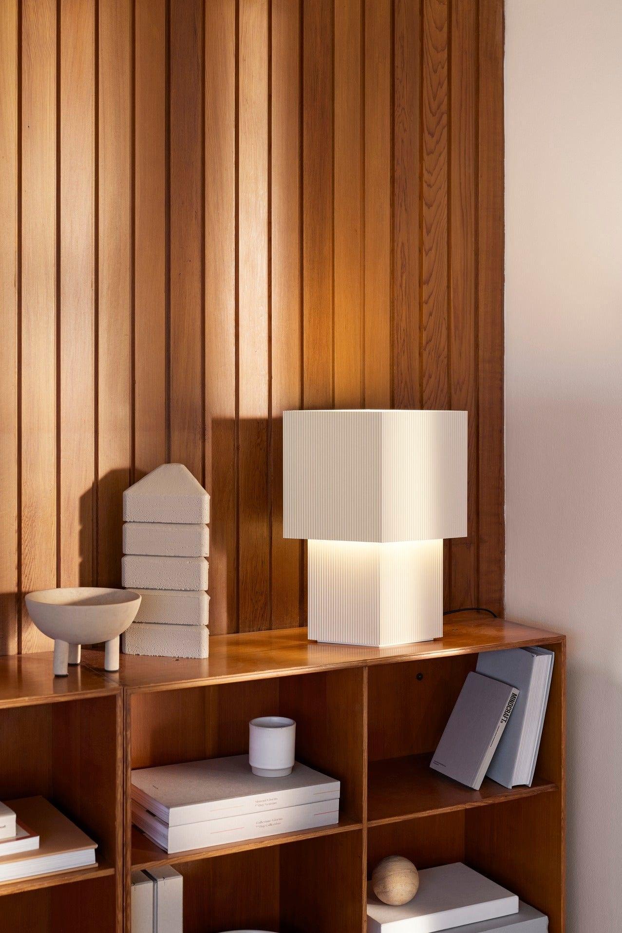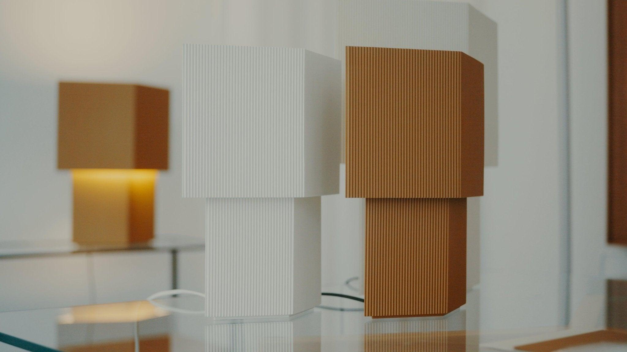 Tischlampe Romb ist ein Beispiel für durchdachtes, skulpturales Design, das mit seiner originellen Form ins Auge fällt. Das Design ist inspiriert von der Struktur von Wellpappe, und die charakteristische, geometrische Silhouette basiert auf zwei übereinander gestapelten Modulen. Dadurch präsentiert sich die Lampe Romb leicht und modern und bringt gleichzeitig einen grafischen Akzent in den Raum.
