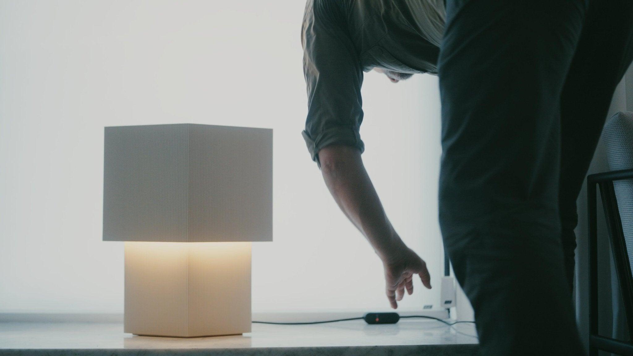 Das sanfte Licht, das zwischen den Formen hindurchscheint, schafft eine angenehme, stimmungsvolle Atmosphäre. Die Tischlampe Romb eignet sich hervorragend sowohl als Lampe für das Wohnzimmer oder Schlafzimmer als auch als stilvolles Element der Einrichtung in gewerblichen Räumen wie Lobbys, Empfangsbereichen oder Büros.