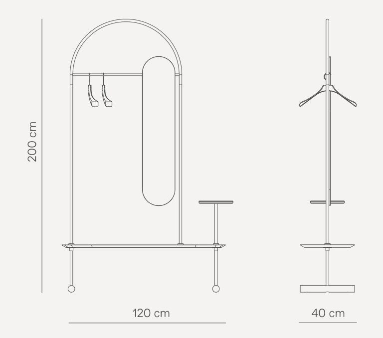 Der moderne Kleiderständer Arco ist eine elegante und funktionale Garderobe, die sich hervorragend in privaten sowie gewerblichen Räumen bewährt. Die schlanke, bogenförmige Konstruktion verleiht ihm Leichtigkeit, und durchdachte Details machen diesen designorientierten Standkleiderständer zu einem markanten Element der Einrichtung – ideal für den Flur, das Schlafzimmer oder ein Boutique-Hotel.