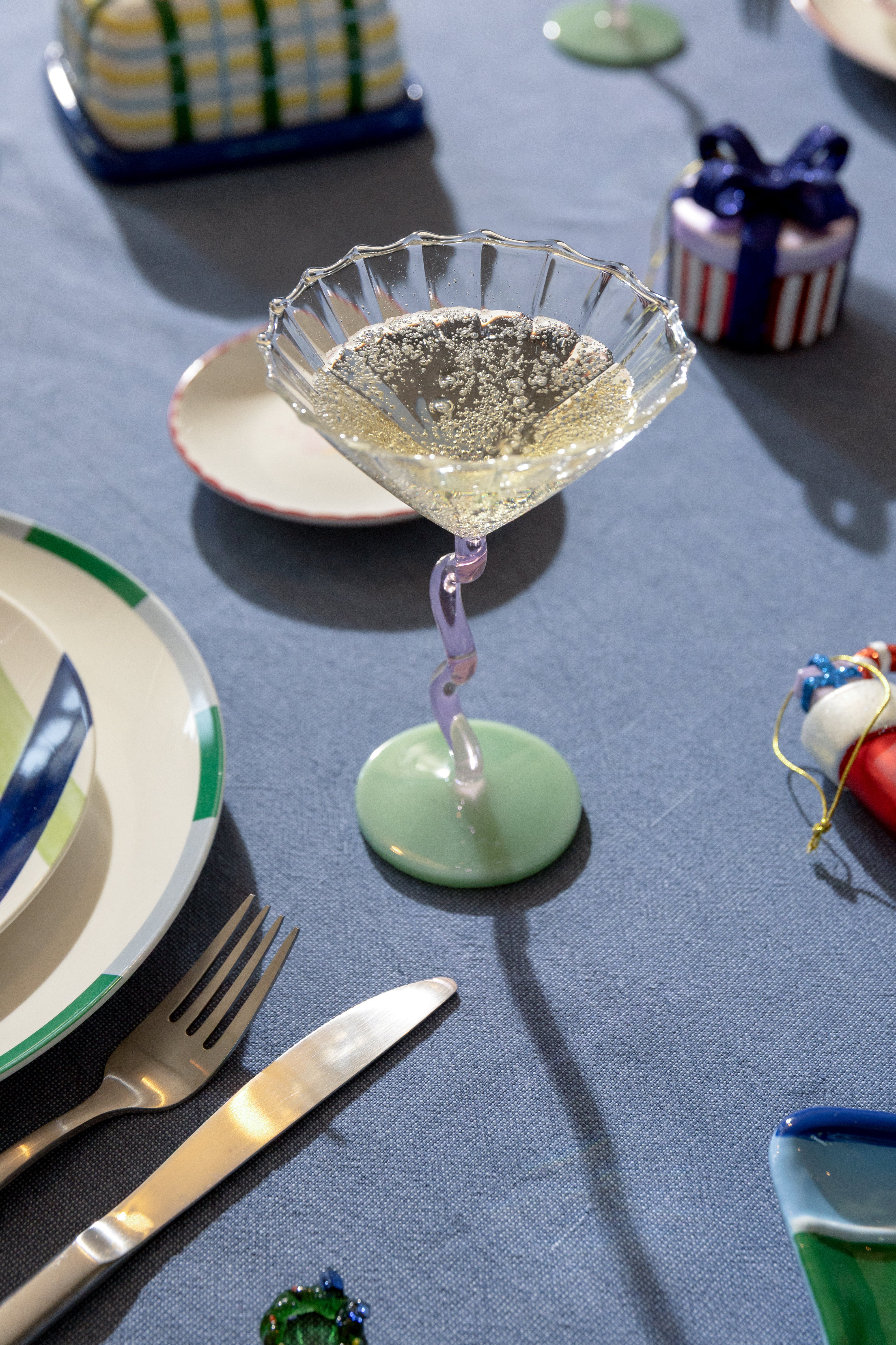 Glaskaraffe TULIP grün mit blauem Griff