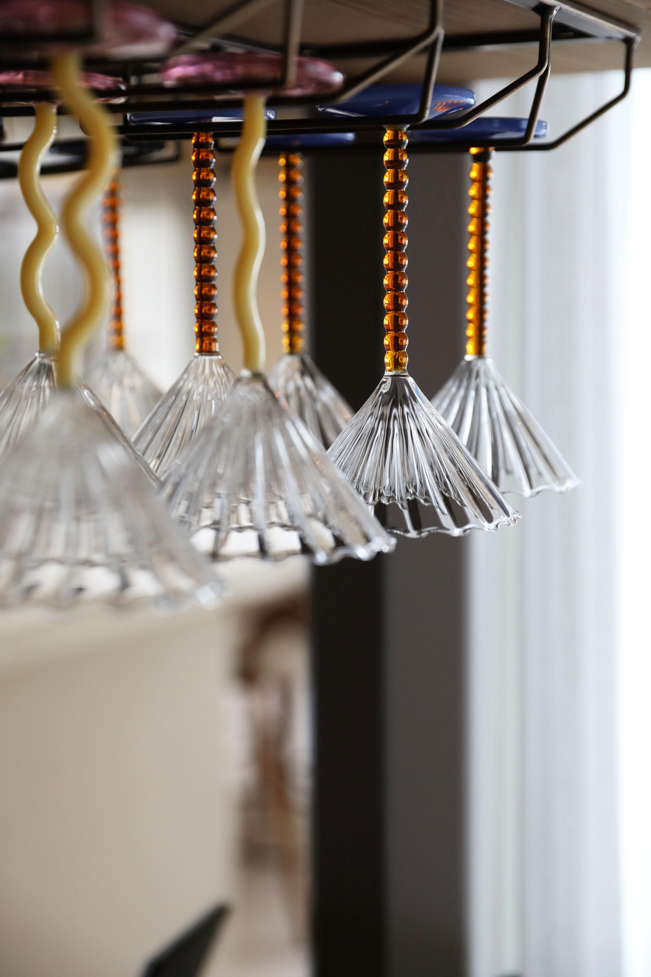 Set aus gläsernen Kelchen PERLE bernsteinfarben mit Blau